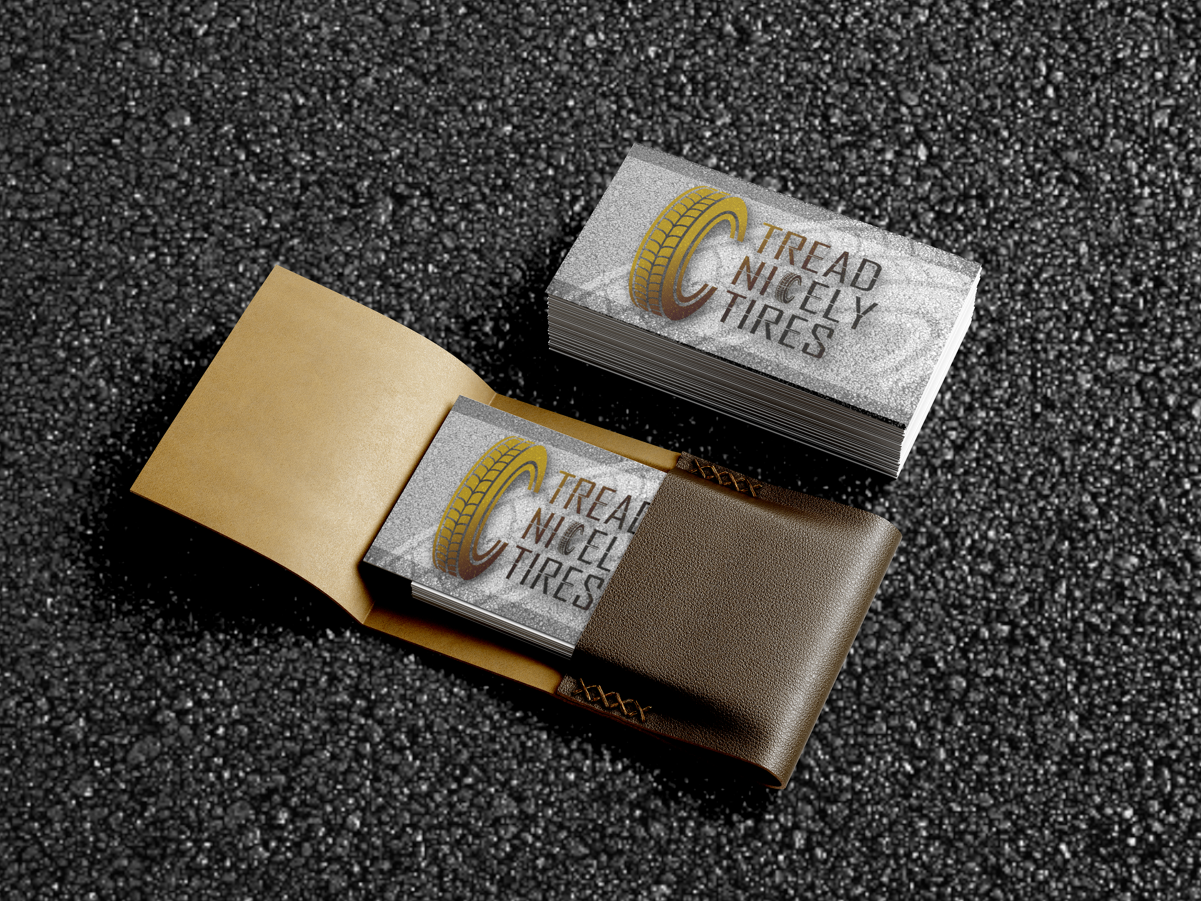 is a tire shop and tire manufacturer located on the east coast. Supplying tires specifically for the the luxury car owners. The gold gradient is meant to symbolixe luxury and the pavement texture represents the road.